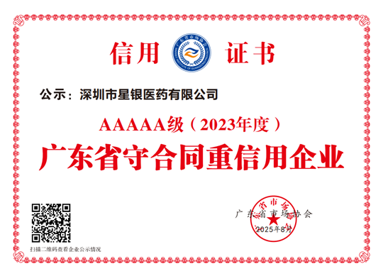 星銀醫(yī)藥連續(xù)十年蟬聯(lián)“廣東省守合同重信用企業(yè)”稱號